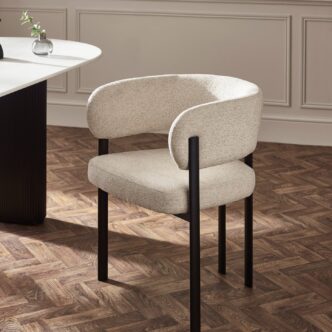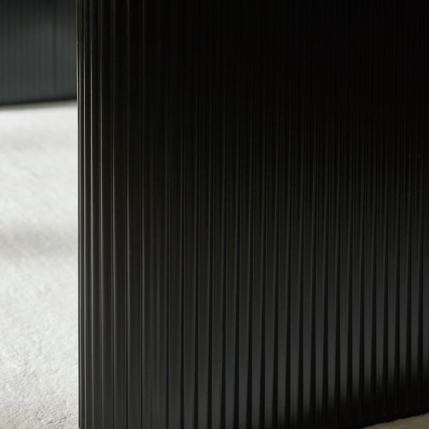 • SCULPTURAL PEDESTAL LEGS: Two bold, fluted black legs add tactile texture and become a striking centrepiece for your dining space.