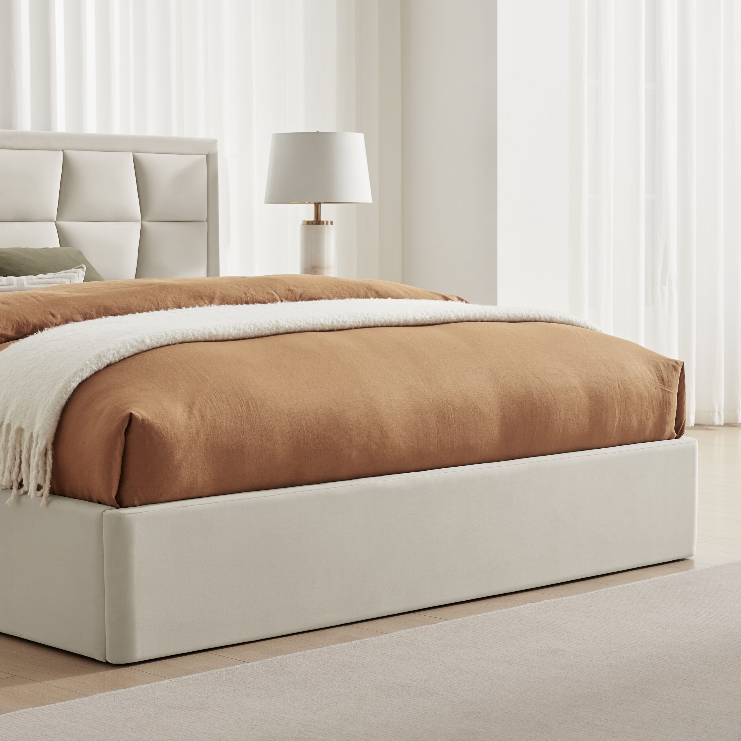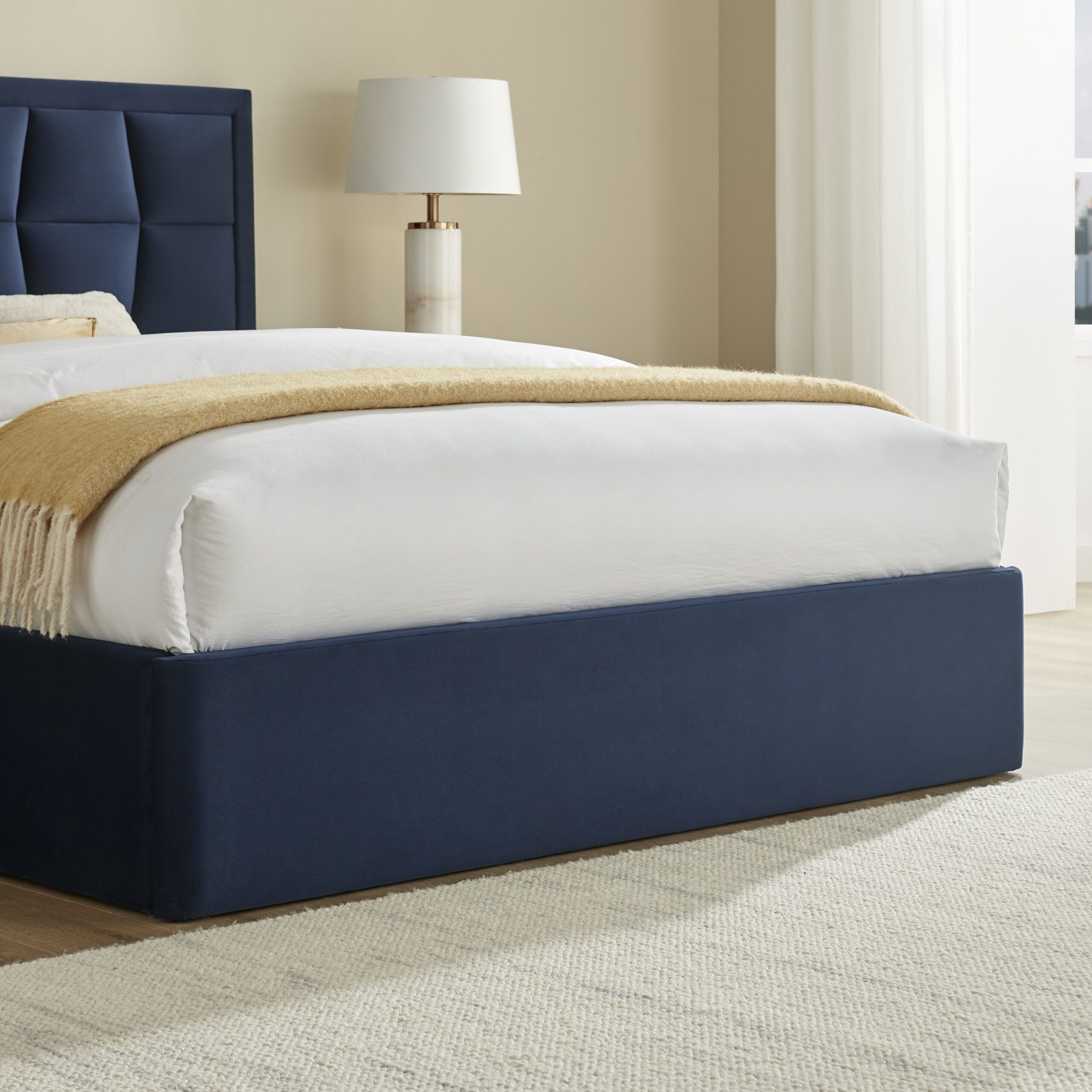 The Carmen Bed is the perfect blend of contemporary design, comfort, and sustainability. Upholstered in luxurious velvet, this elegant bed frame is available in Natural, Navy, or Silver, making it easy to create a stylish focal point in any modern bedroom.