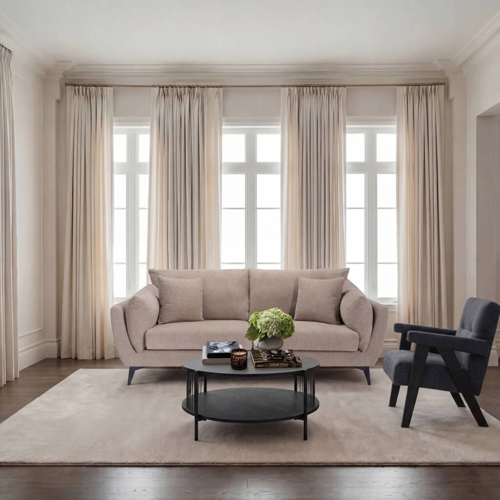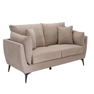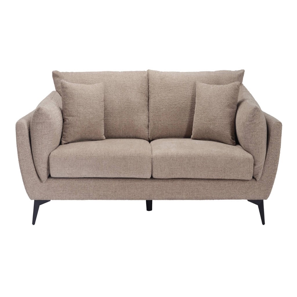 A contemporary pillow-shaped sofa upholstered in a dark neutral textured fabric for a soft, inviting feel. Finished with sleek matte black legs and complete with two matching scatter cushions, it offers both style and comfort. Available in 2 or 3 seater options, it’s a versatile choice for spaces of any size.