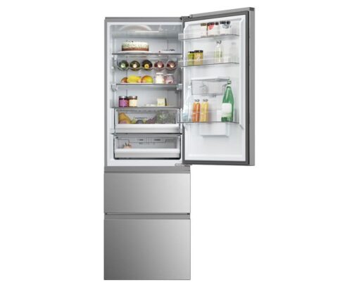 - At 60cm wide, Haier’s Three Doors 60 refrigerators boast an impressively engineered freezer drawer system that not only allows for a more efficient use of space for your frozen goods, it also ensures quick access to the entire freezer, saving up to 60% more energy compared to similar bottom mounted fridge-freezers. The Fresher Techs®, meanwhile, are constantly adjusting conditions to ensure the quality of your food is preserved. Haier’s 3D 60 Series 5 refrigerators guarantee the perfect preservation of your food thanks to specialised zones that manage temperature and/or humidity to preserve your food for longer, as well as other cooling and preservation solutions.D Class