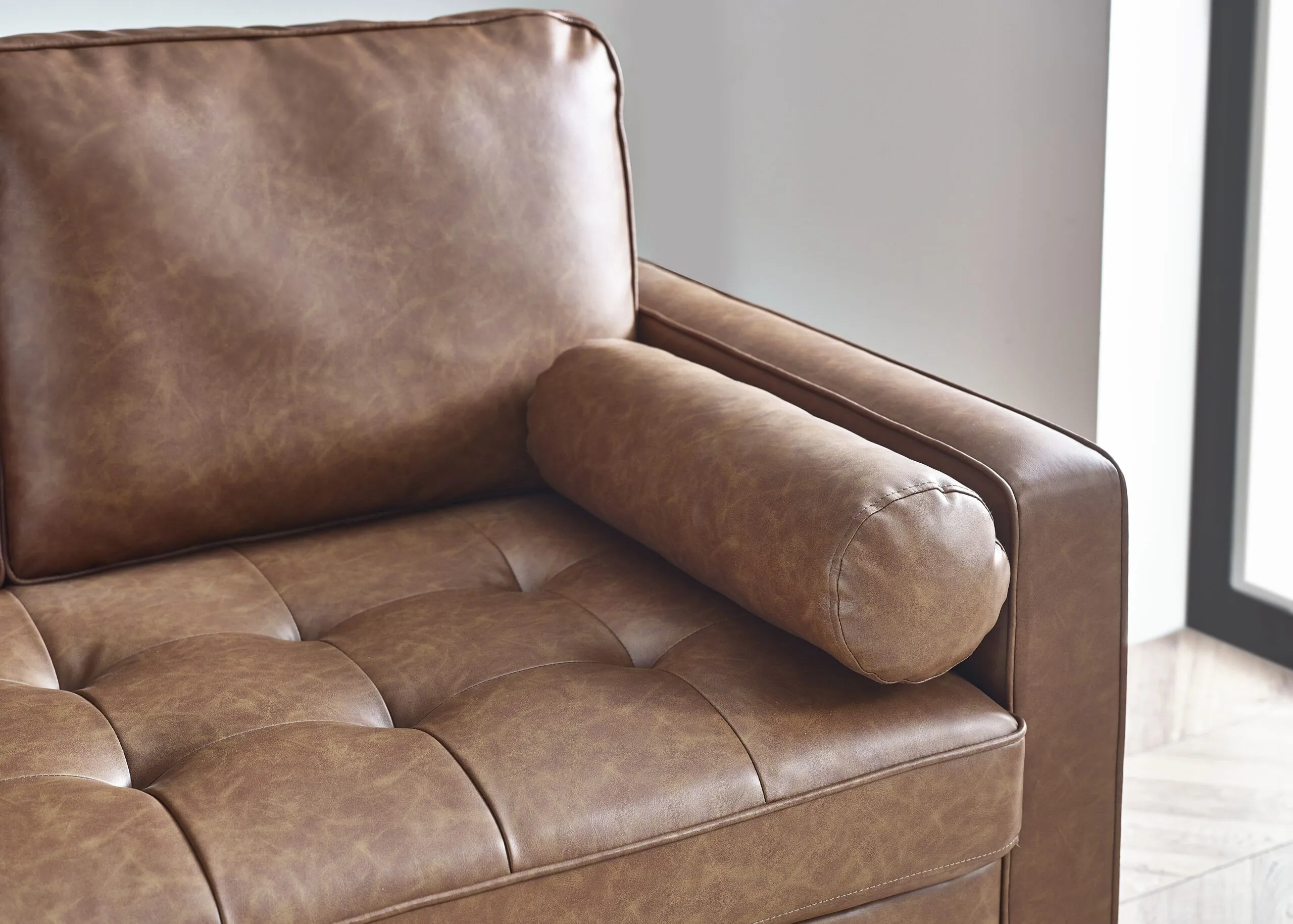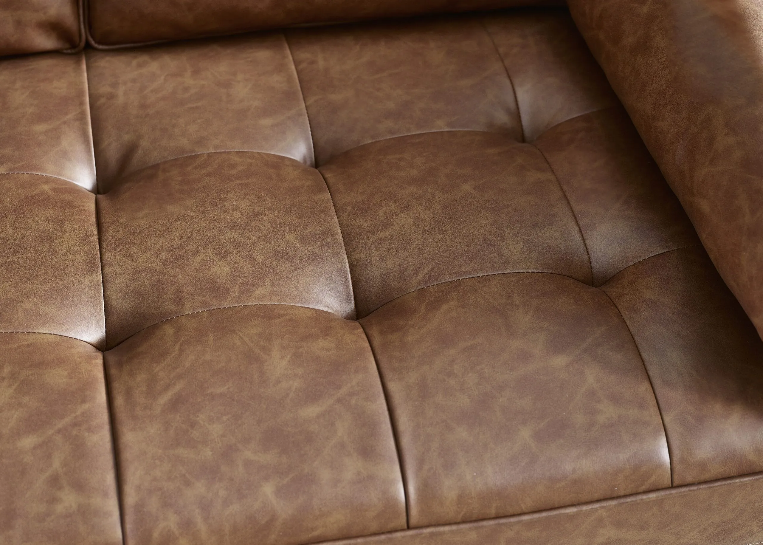 Redefine your living space with the Henley 3-Seater, upholstered in luxurious faux leather that offers a sleek, modern finish. Clean lines and elegant bolsters create a striking visual, while button tufting adds a touch of timeless charm. Designed for both comfort and durability, it’s easy to maintain and perfect for everyday relaxation. With minimal assembly required—just attach the legs—it’s ready to elevate your home with effortless style.
