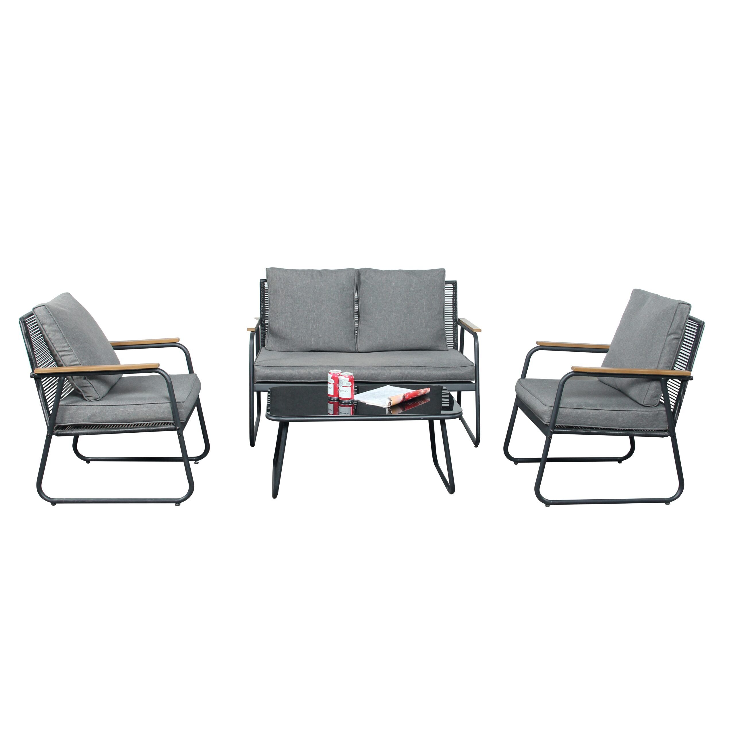 Introducing the Sage 4 seat conversational set, where comfort meets style in your outdoor oasis. This 4 piece garden set features plush grey cushions that invite you to unwind and relax. The sleek glass table adds a touch of elegance to your space, perfect for hosting gatherings or enjoying a quiet moment. Crafted with quality and durability in mind, this set is designed to withstand the elements and provide lasting enjoyment. Transform your outdoor area into a cozy retreat with the Sage conversational set. It is recommended to cover this set when not in use, especially in harsh weather conditions.