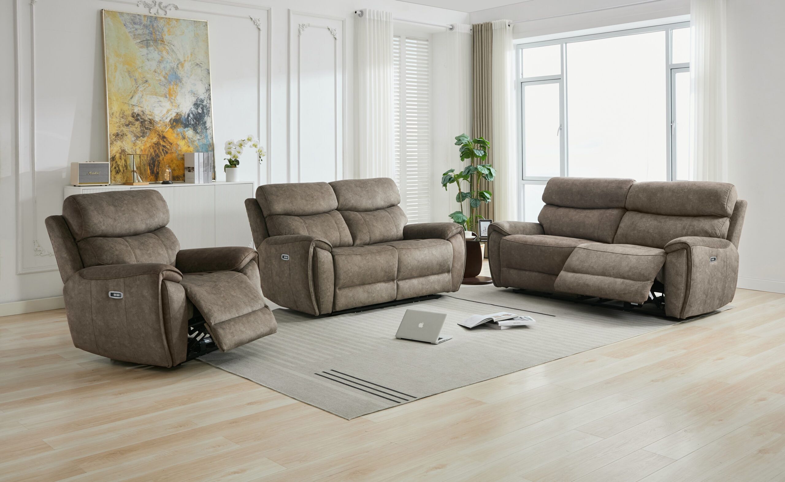 Seville Suede Electric Recliner 3 Seater, 2 Seater & Armchair